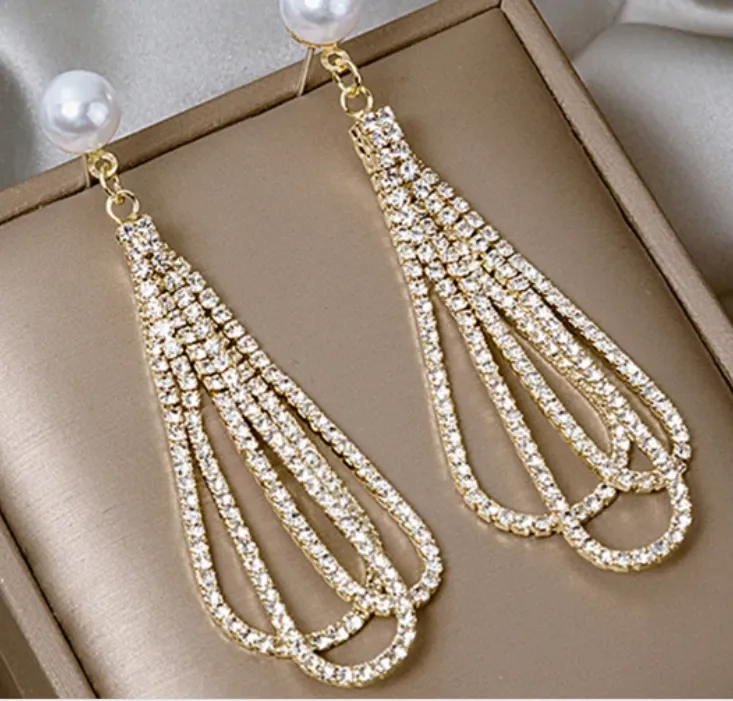 2 Peças Europeu E Americano Exagerado Comprido Embutidos Diamante Pingo D'Água Senhoras Brincos Banquet